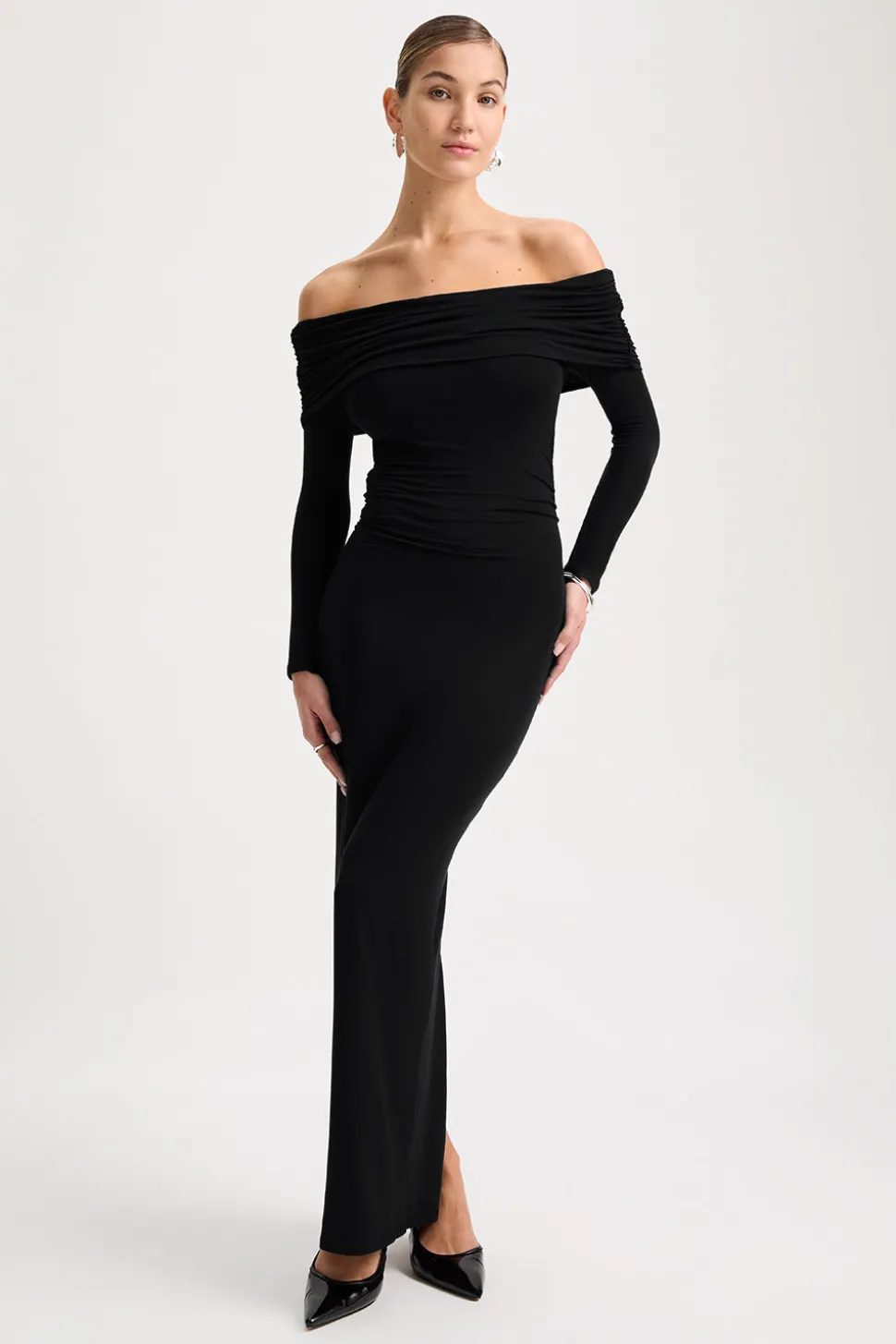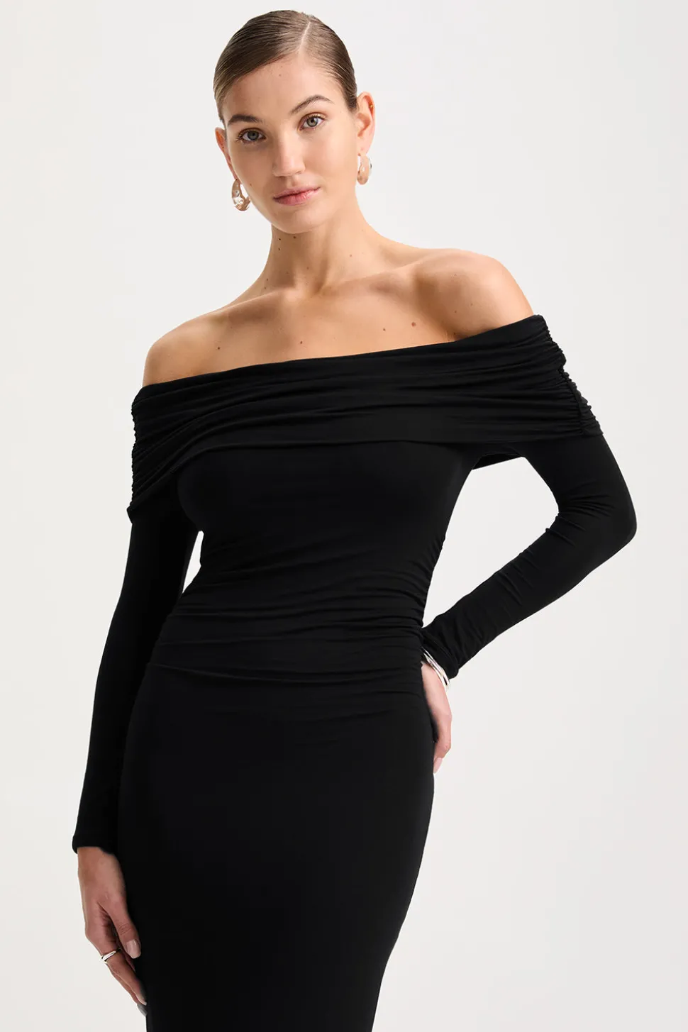 Our off-the-shoulder maxi dress is perfect for party season and beyond. Made from our viral 365 Original material that is oh-so-soft and double-layered, you can wear this maxi dress comfortably and confidently — no bra, no problem. Wave in 2025 in can’t-stop-staring ruched sophistication, knowing that your new dress can be dressed up or down for all your plans to come.