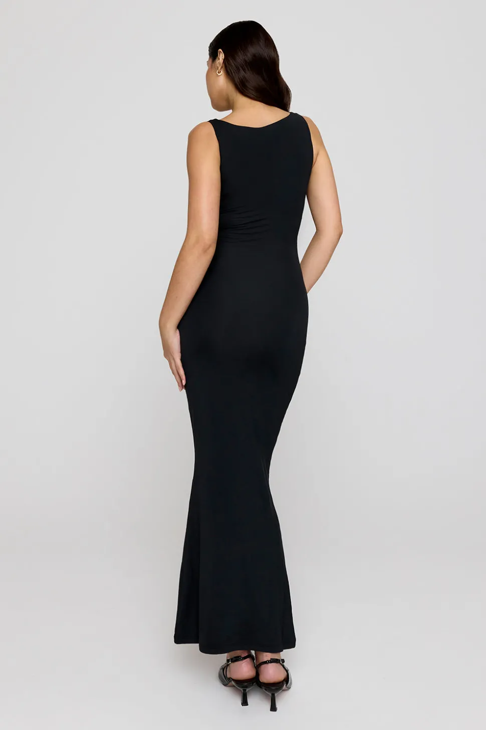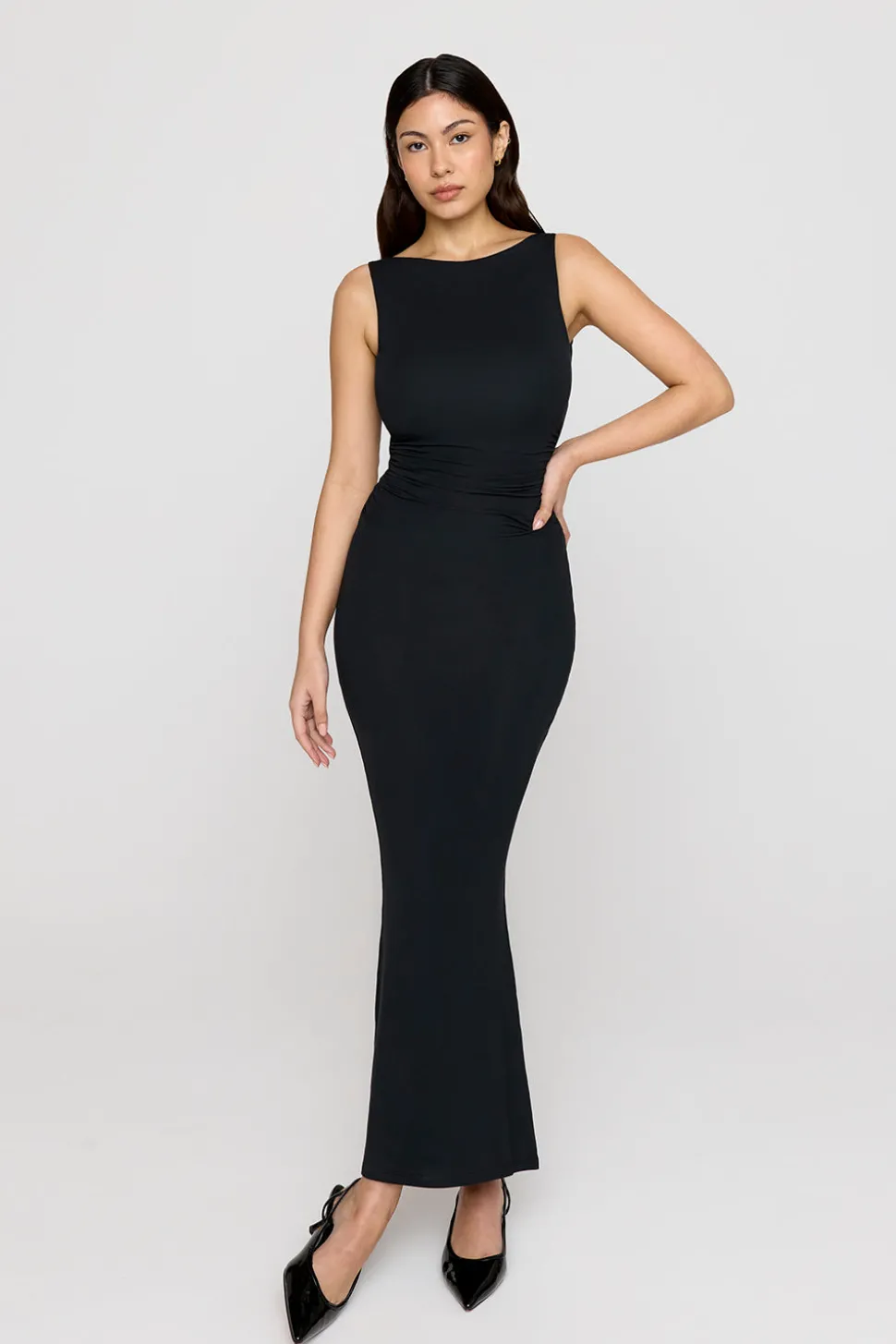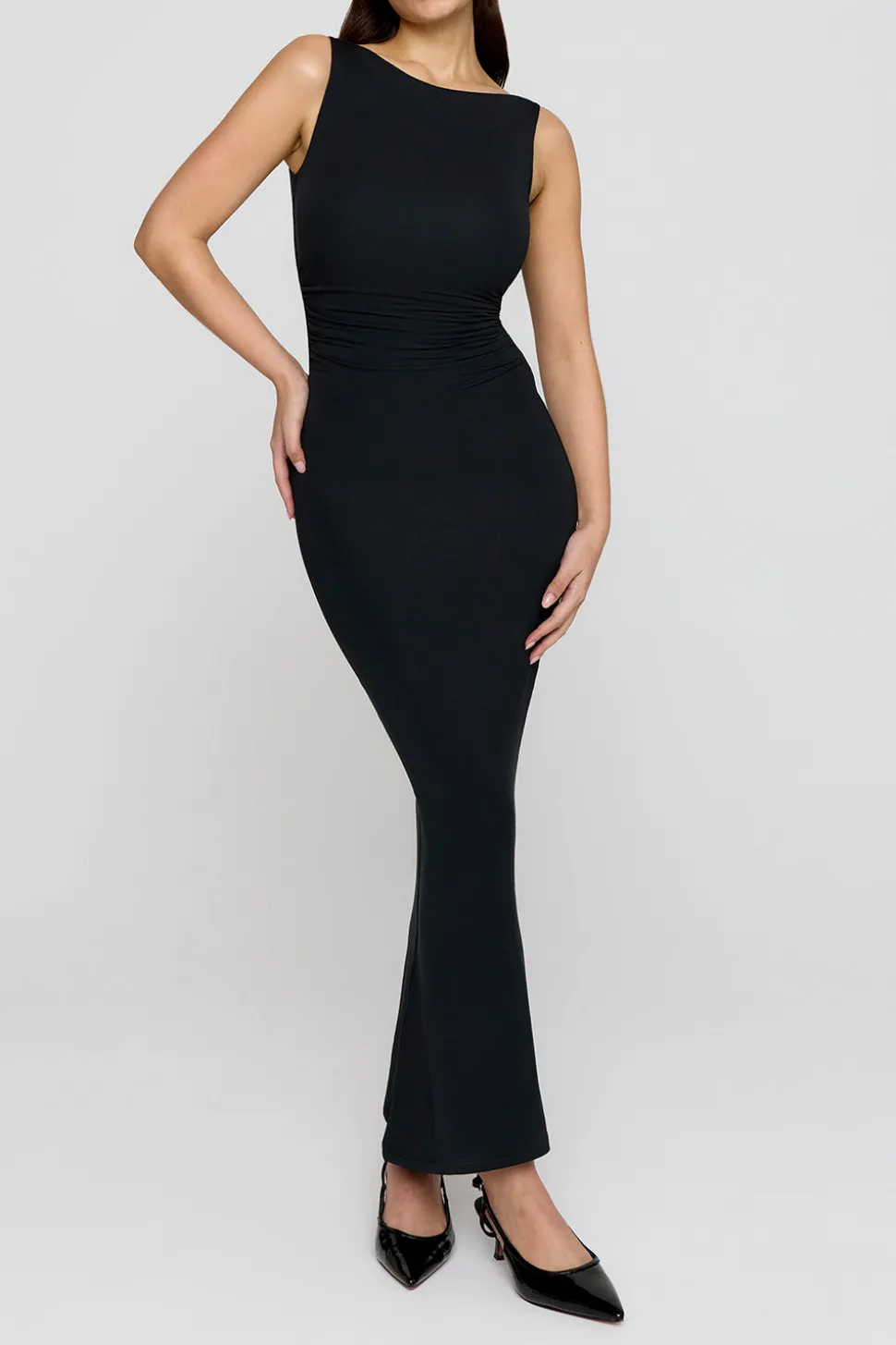 365 Ruched Side Boat Neck Maxi Dress – Shadow Black