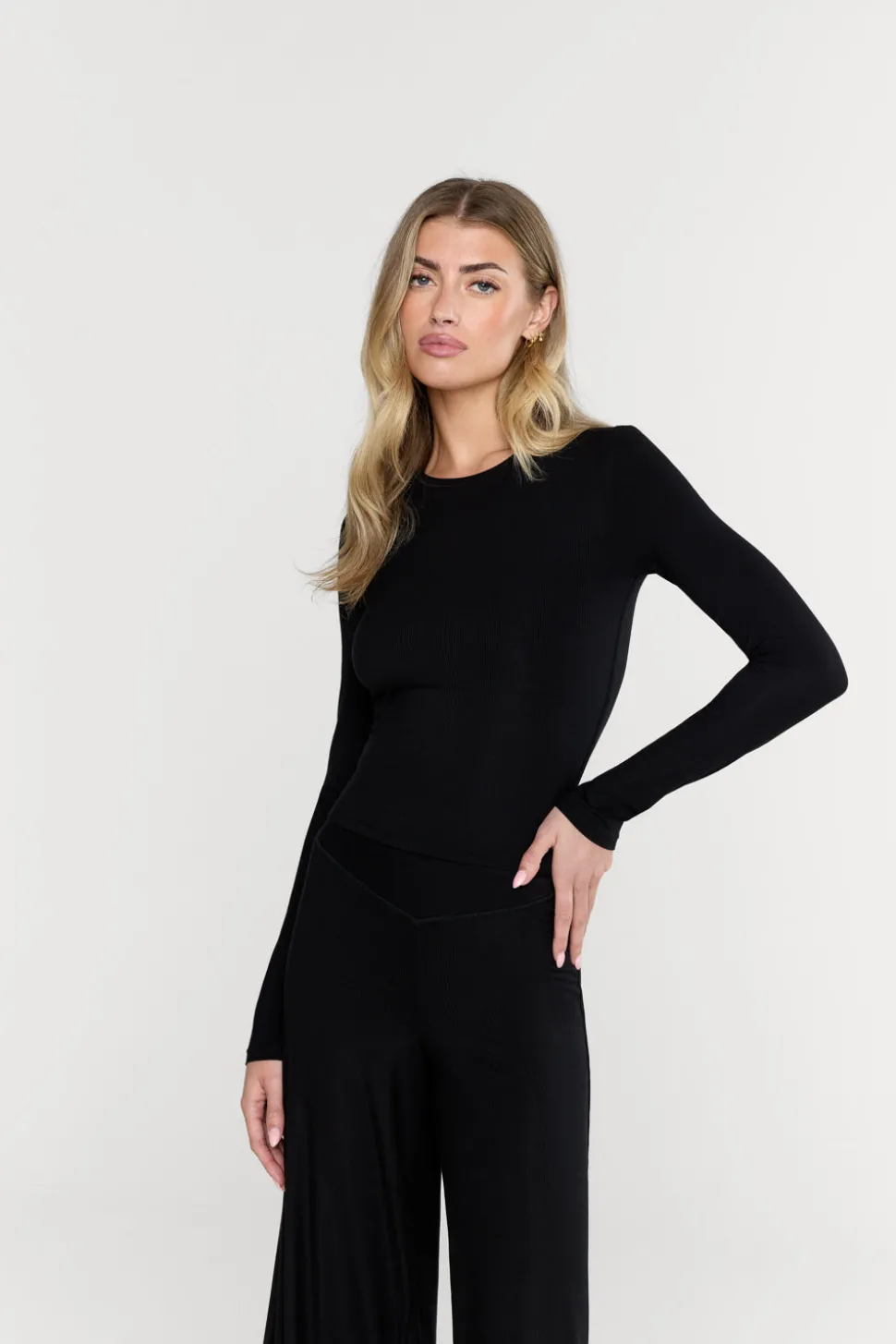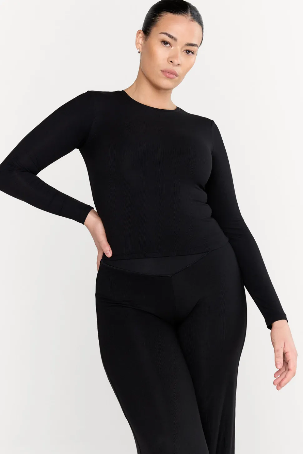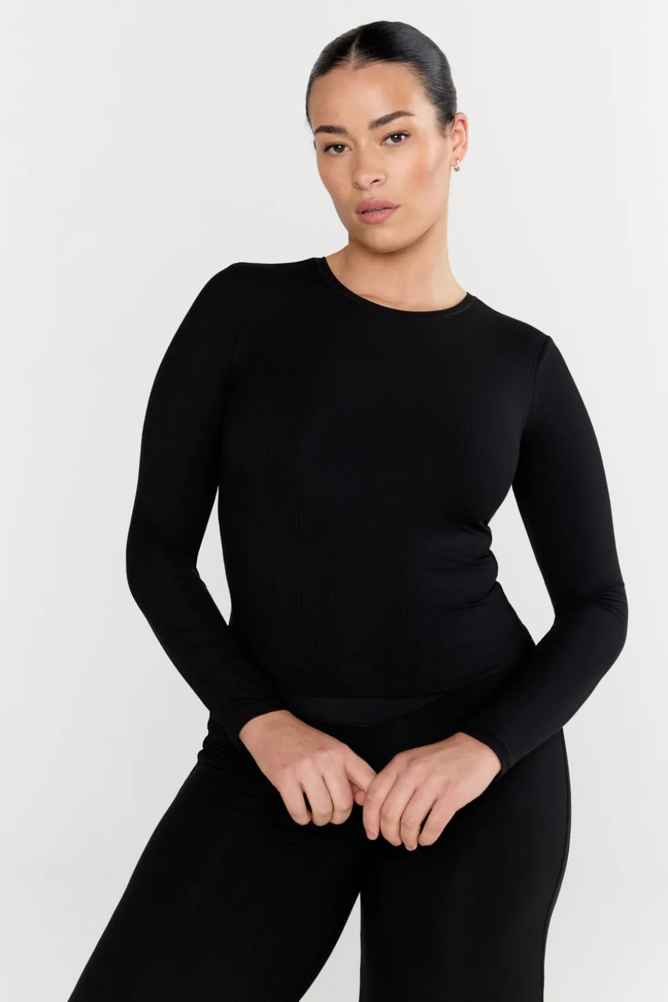 365 Sculpting Lounge Long Sleeve Top – Shadow Black