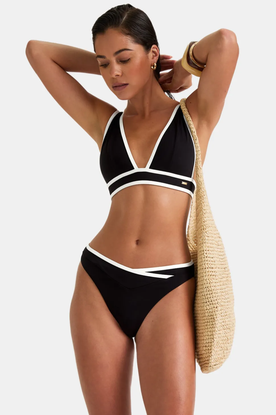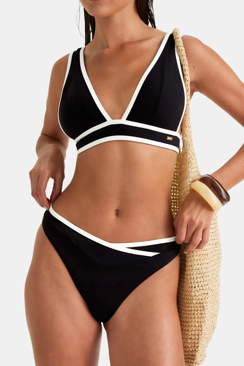 Contrast Wrap Waist Bikini Bottom – Shadow Black And Coconut Milk