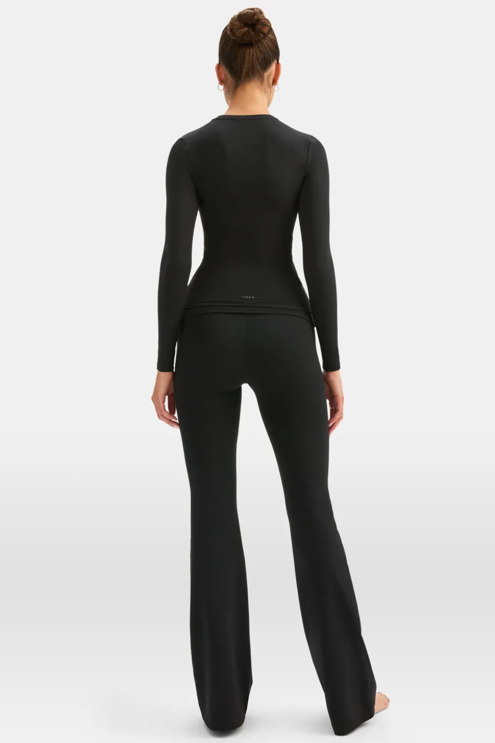 Fabrics that you can feel good in and feel good about. Our Dayflex collection is crafted using 75% Recycled Polyamide for durability and strength (saved from waste) and 25% Elastane for the perfect 4-way stretch. Now available in a longer full length, this style has long sleeves, a sleek crew neckline, and the DayFlex fabric you know and love – everything you could ever want from athleisure with all the performance qualities of activewear.