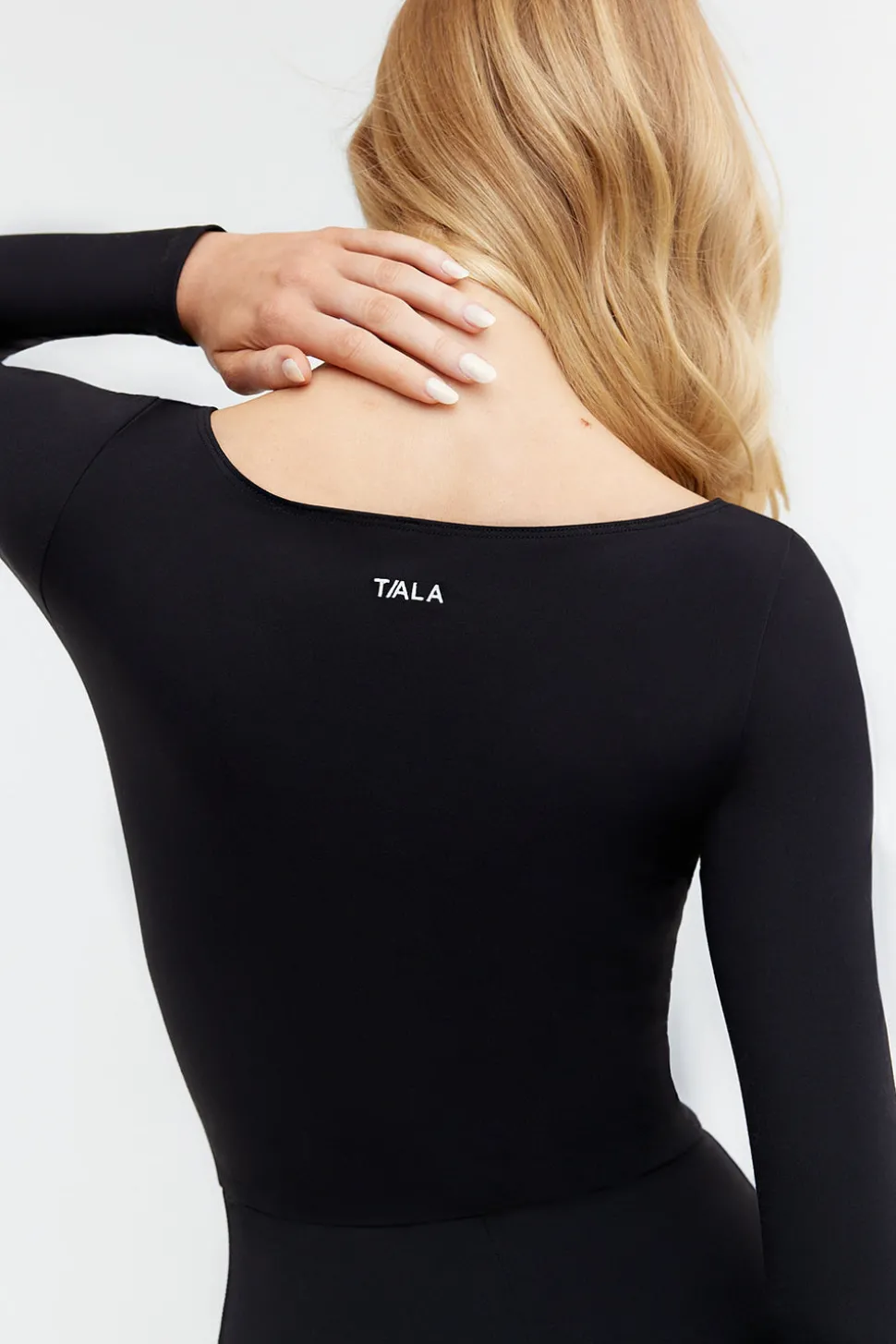 - Embroidered TALA branding on the back neck