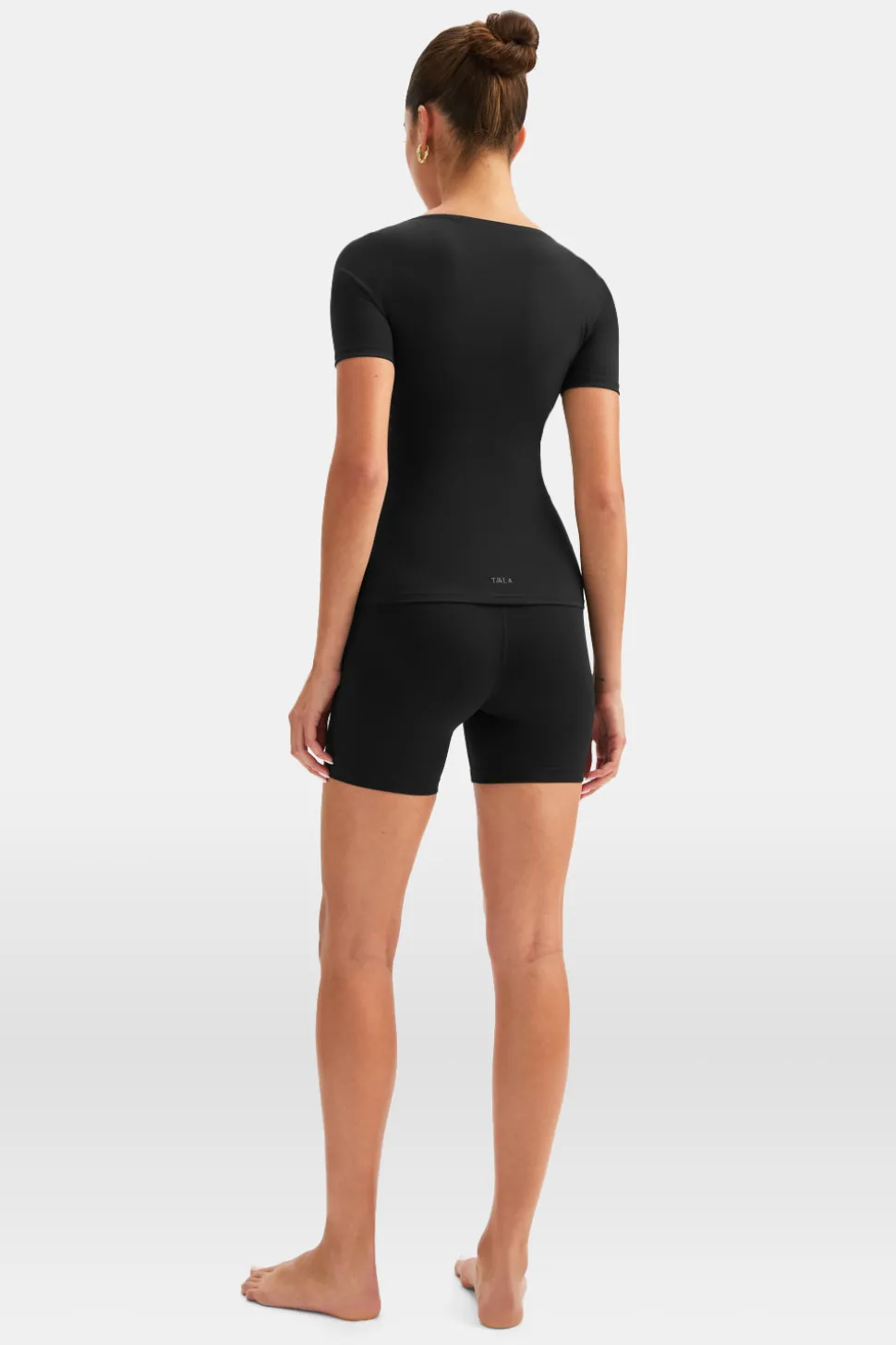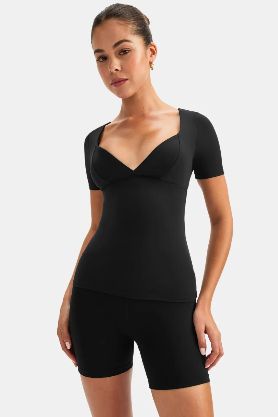 Introducing the newest item on your wishlist, the Princess Seam Short Sleeve Top. Created with the built-in support and removable pads you know and love but coupled with ultra-flattering princess seams and the most romantic of details, she’s set to make all your girlhood dreams come true.
