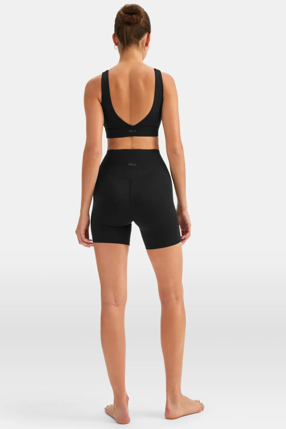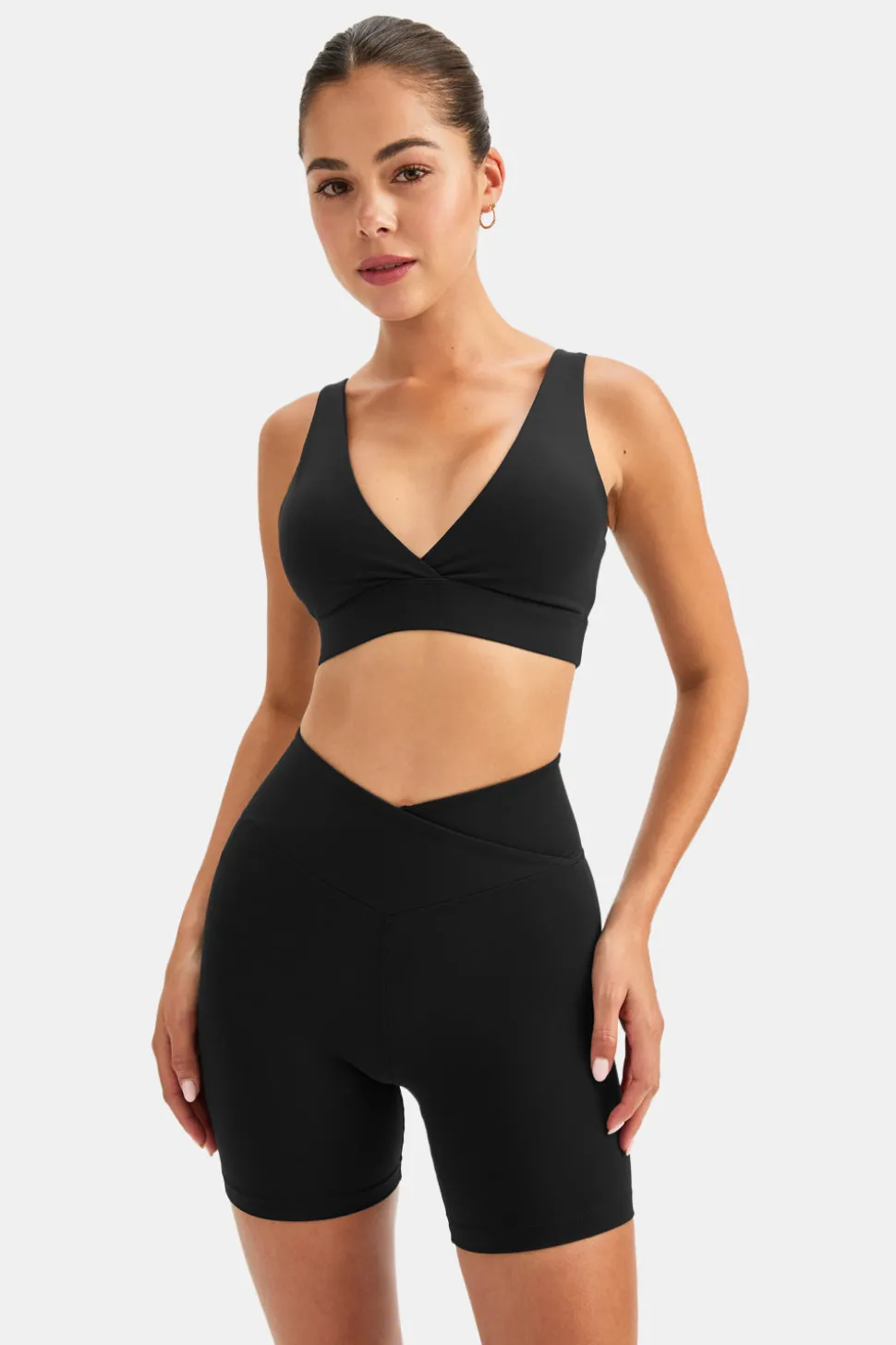 So much more than your average yoga sports bra and so flattering, you’ll want to wear it beyond the yoga studio (we love it styled up for night out). With a support band below the bust, this double layered bra has a stylish deep v design both front and back and is crafted from our naked-feel fabric.
