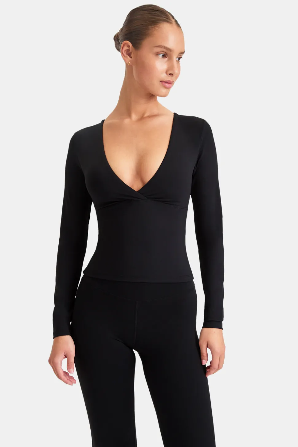 Believe the hype, our DayFlex collection is back and better than ever. This V Neck Long Sleeve Top is the autumn-ready version of our viral V-Neck bra and vest. Do the words free boob job ring any bells? IYKYK, this top is guaranteed to leave you (and the girls) feeling and looking your very best. A gorgeous airbrushed effect and feel means you won’t want to take this off which is perfect since DayFlex can be worn from barre to brunch and beyond.