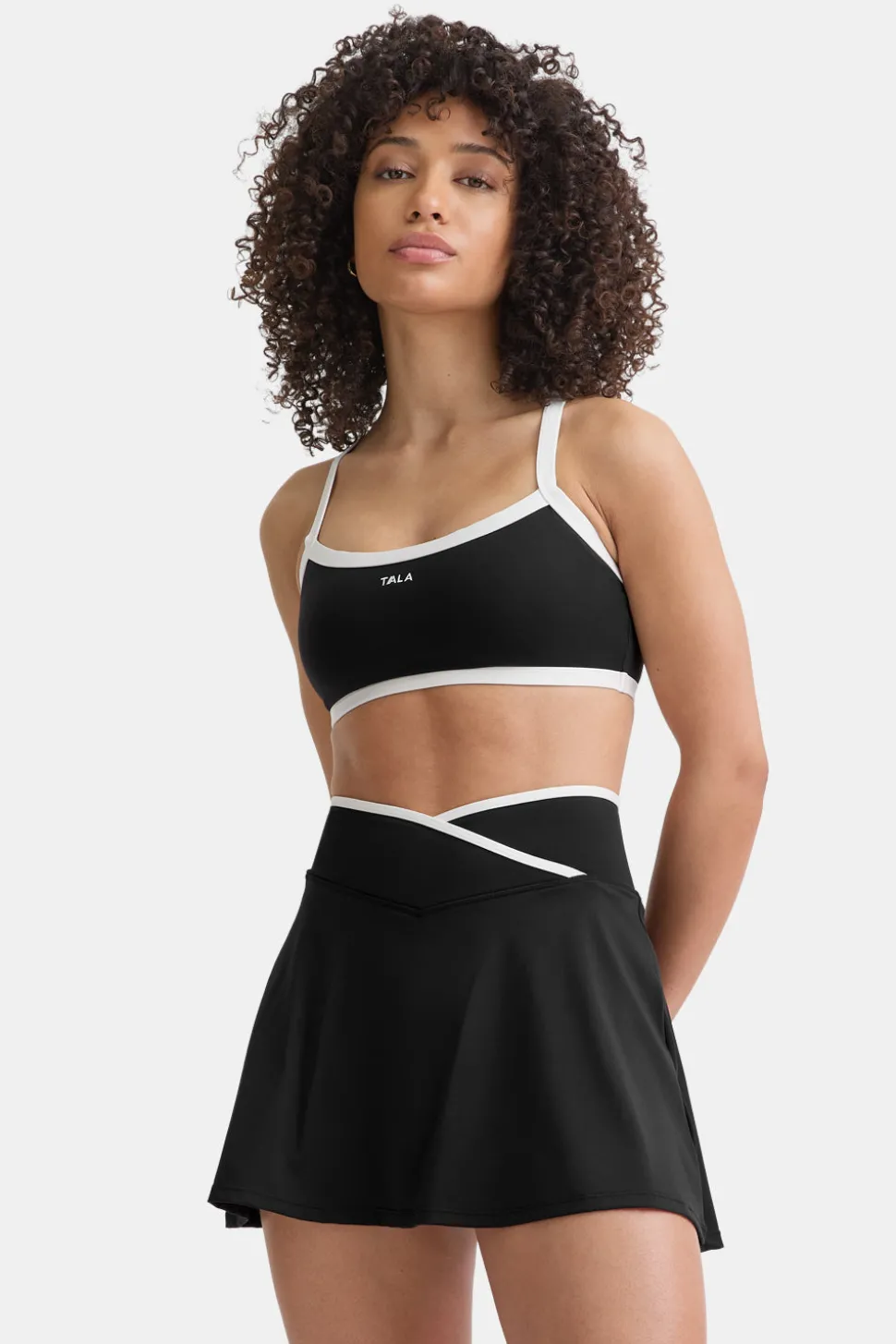 Go from court to coffee catch-ups in the best invention ever (skorts) with a TALA twist. Featuring an ultra-flattering wrap waistband, contrast piping and built-in shorts under a flowy skirt for extra coverage *with* pockets.