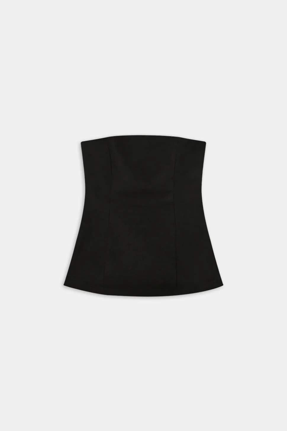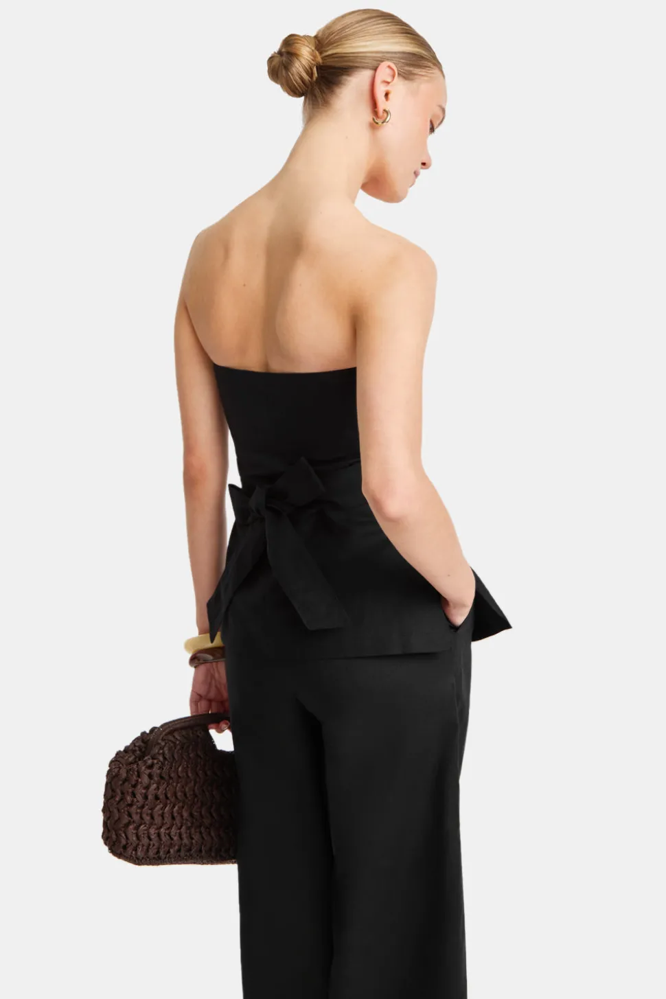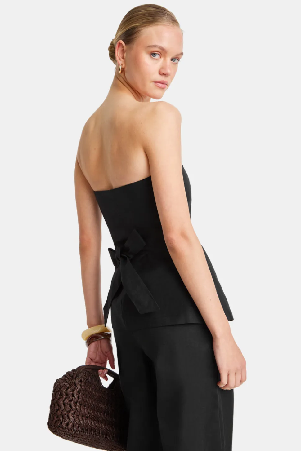 Whether you’re OOO or have just got back, our never-ever see-through strapless, structured linen top is the definition of beach and beyond versatility. Wear with the matching linen shorts or trousers.