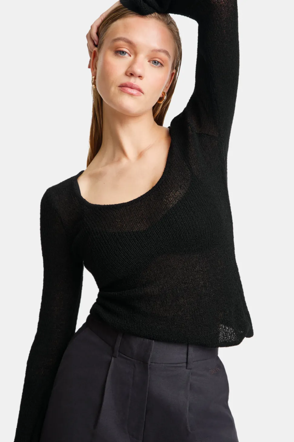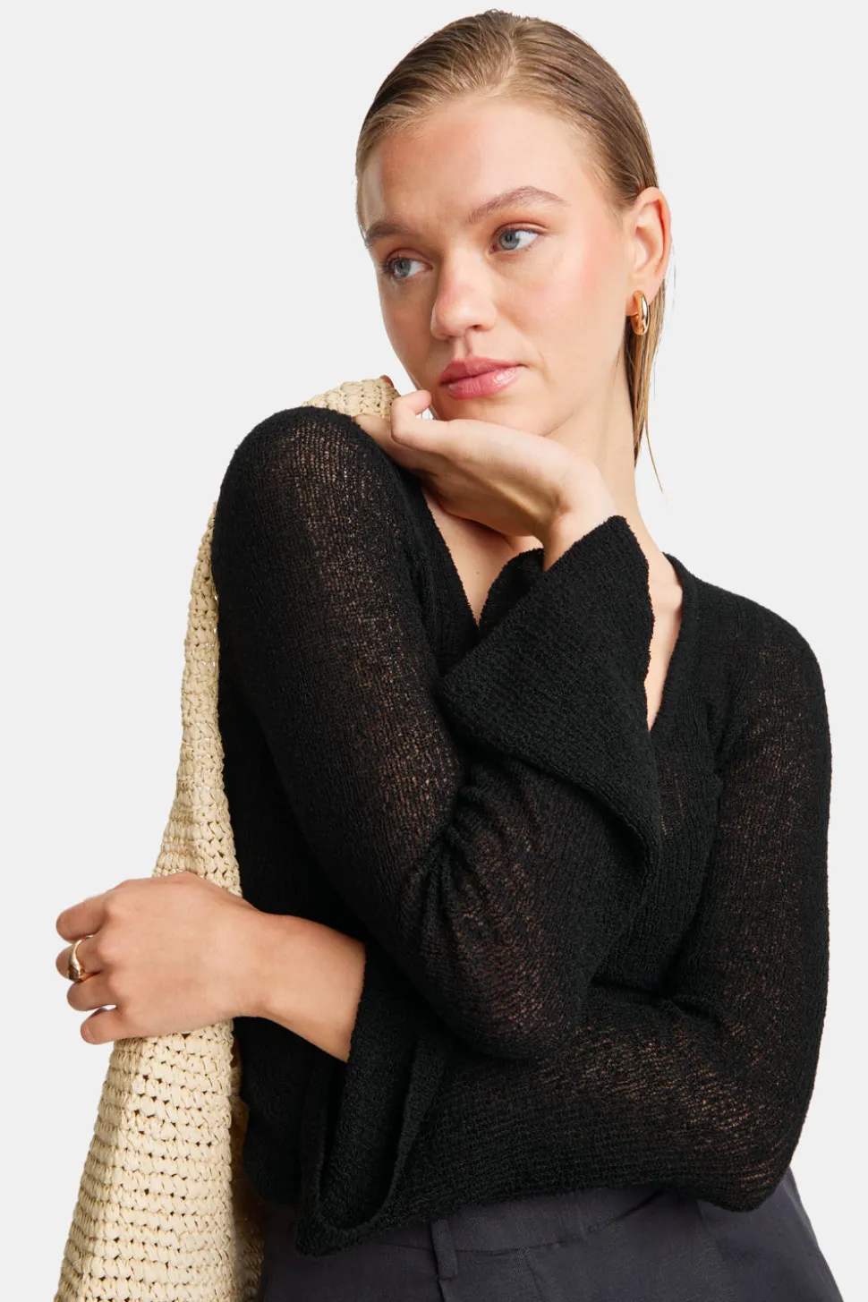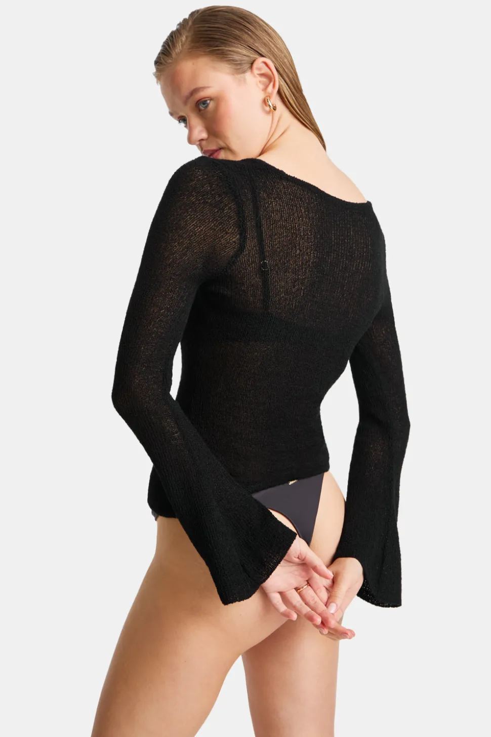 Multiway Long Sleeve Resort Knit Top – Shadow Black