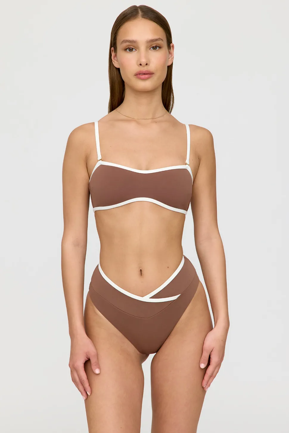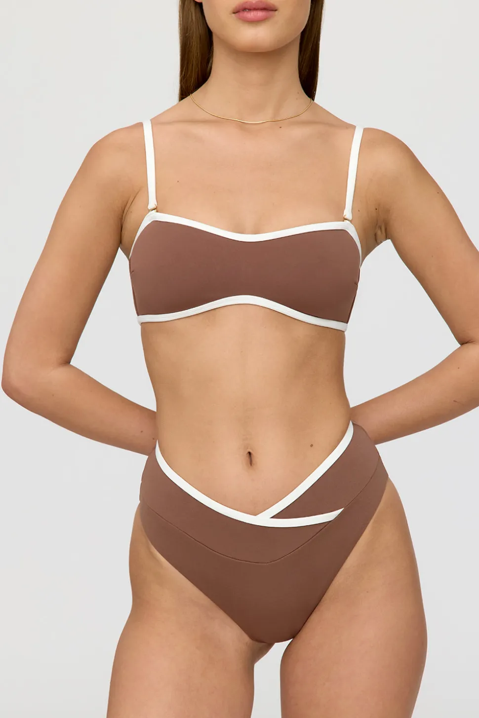 Mykonos Contrast Trim Multiway Bandeau Bikini Top – Terracotta And Coconut Milk