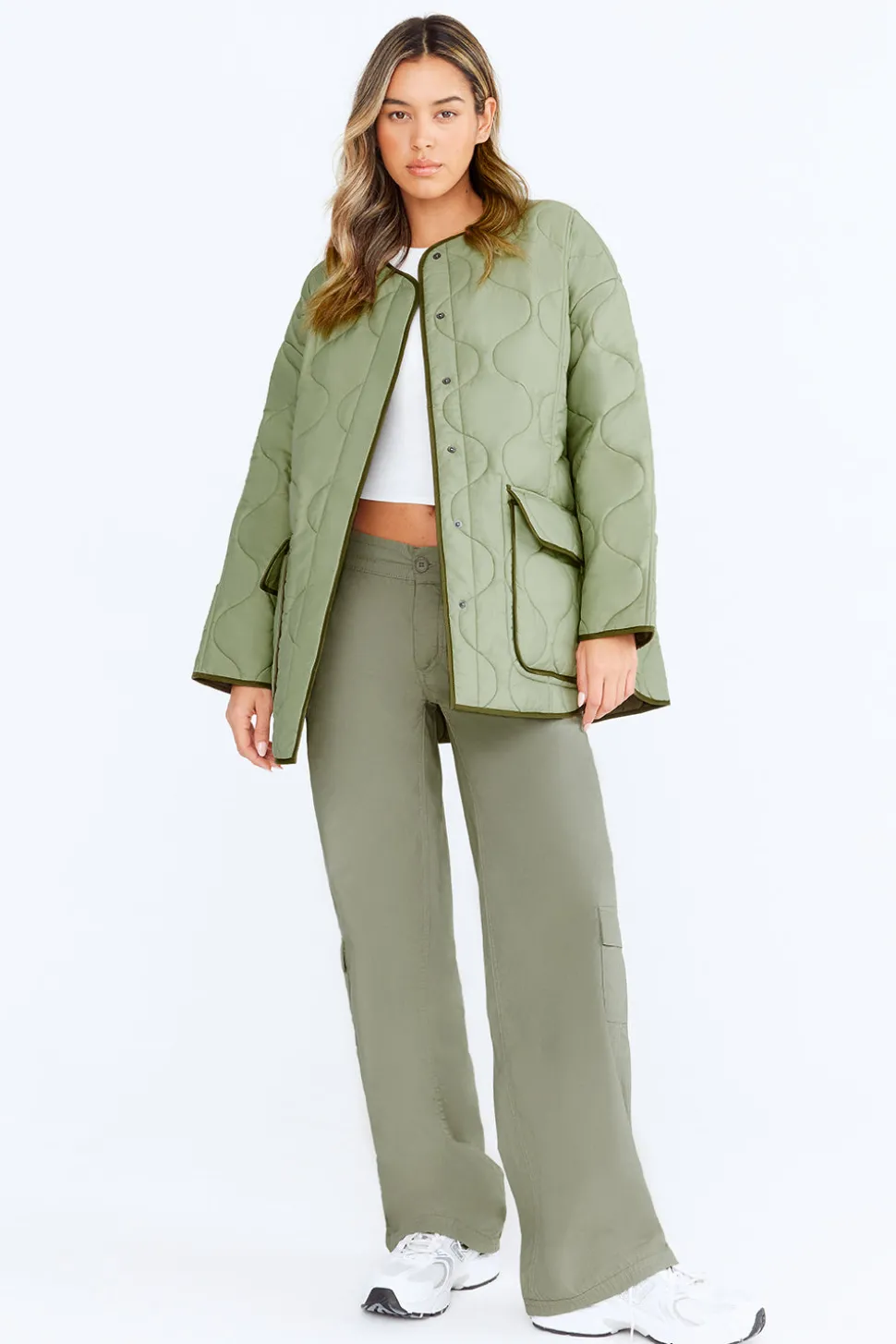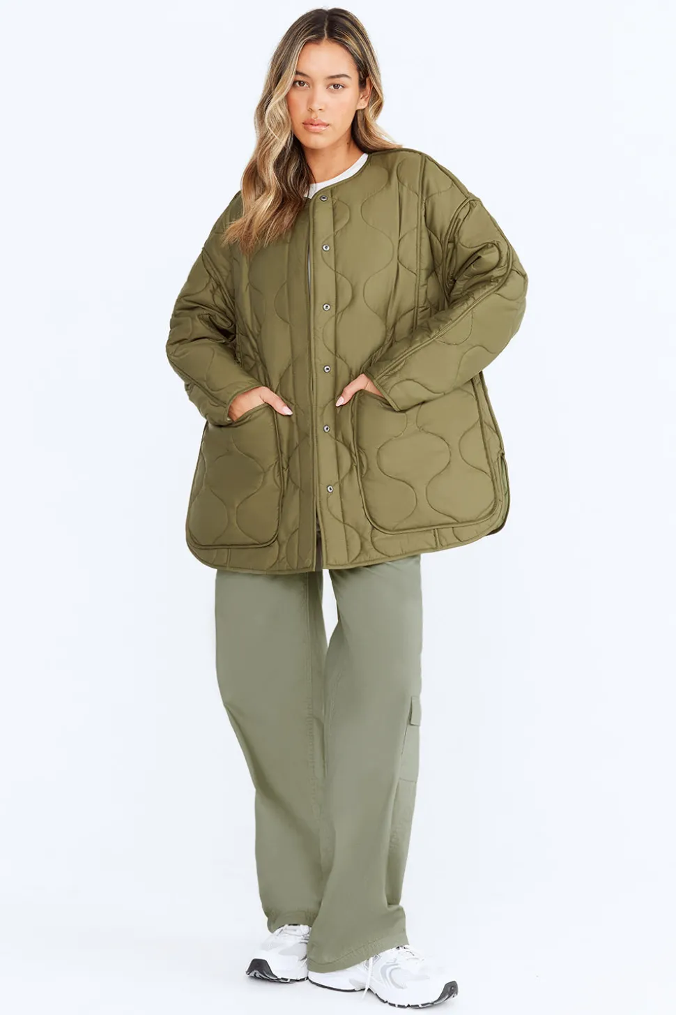 Meet our Oversized Reversible Quilted Jacket with the perfect shape to MAKE not break your outfit. What do we love the most? This jacket is reversible, giving you 2 jackets in one. With an oversized boxy fit, it’s perfect to layer over your favourite transitional pieces and not feel constricted. The curved split hem and quilting add an elevated touch and the centre front poppers means this jacket is super easy to take on and off for when you want to switch up the colours.