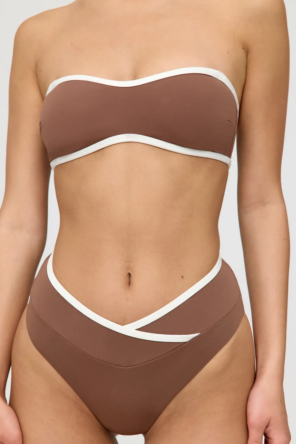 Our Wrap Waist Bikini Briefs provide the exact level of coverage you’ll feel comfortable with. The cute, contrast detailing and wrap waist cut make for an ultra-flattering fit that sits on the waistline and won’t wash away with the waves. Made from the same, shaping fabric as our Plunge Bikini Tops, these bottoms lift and sculpt while you wear them for a peachy bum.