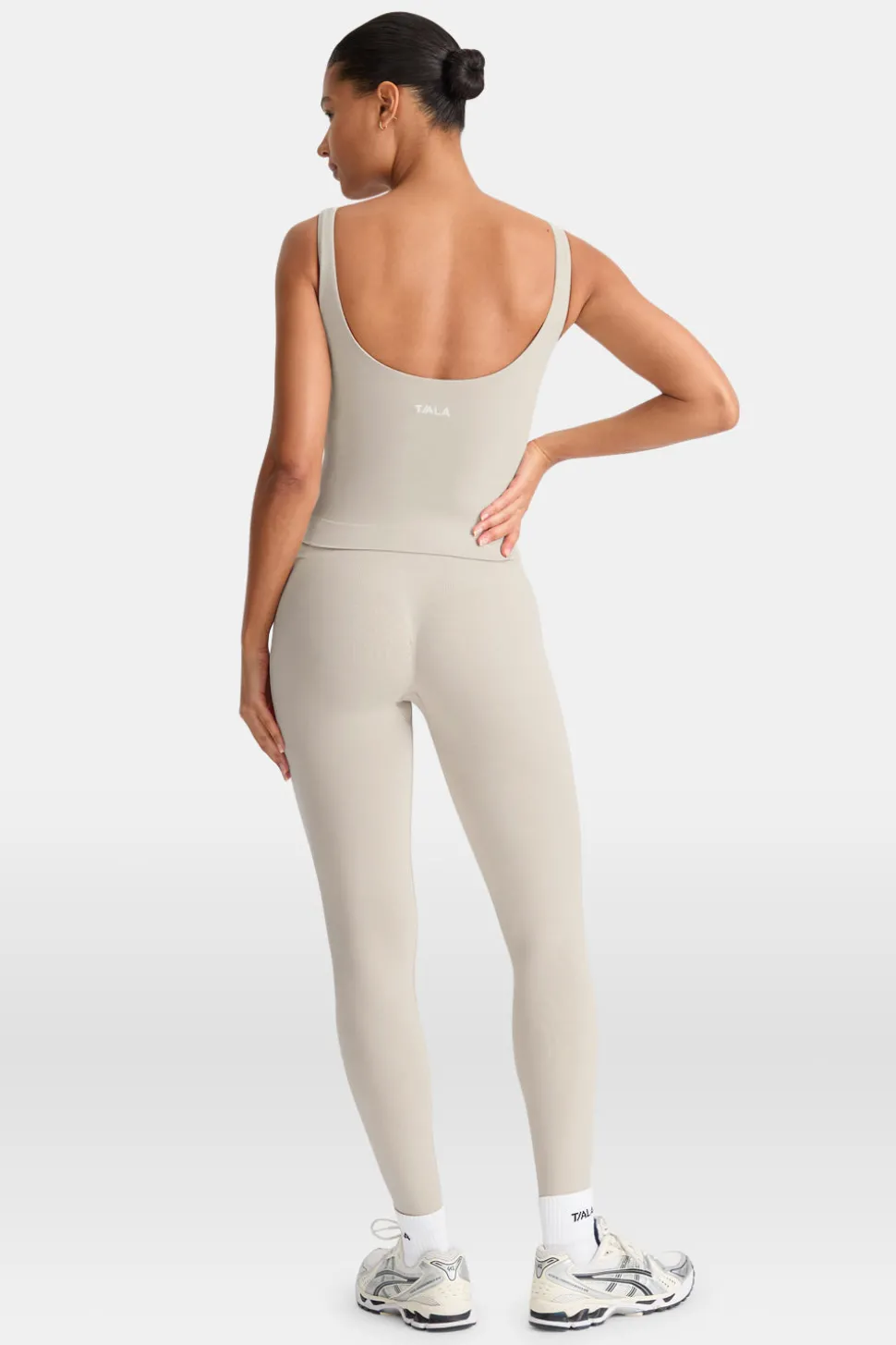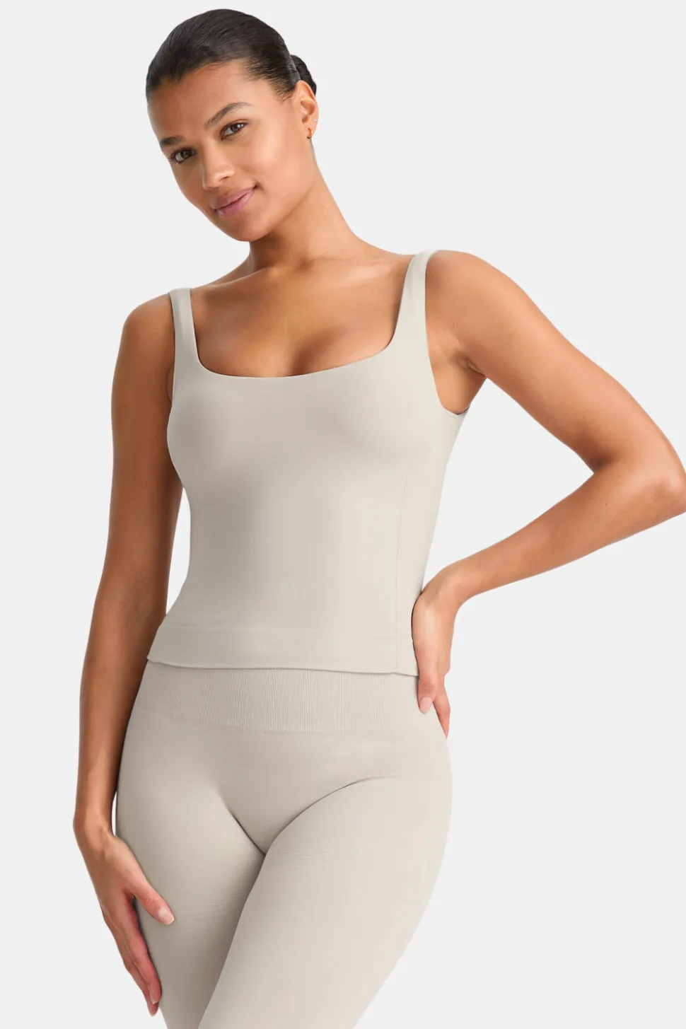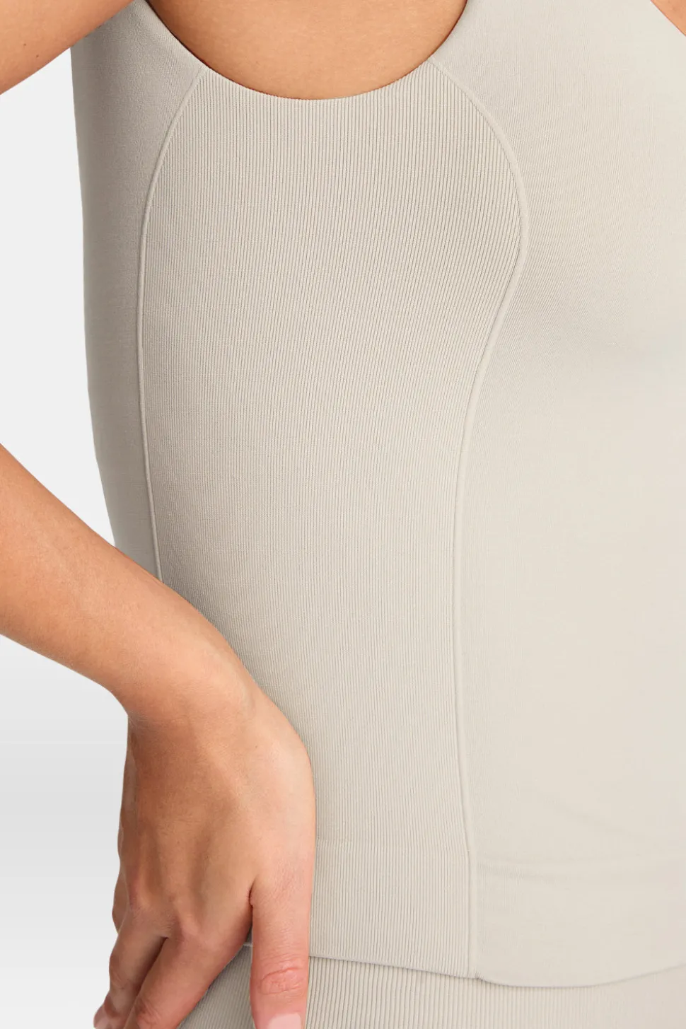 All the support you need while lifting the weight(s) you want. Our Sculpt Seamless Built-In Bra Vest is a seamless sports bra and vest top hybrid, perfect for conditioning classes with a little cardio and a lot of resistance training. Featuring a flattering square neckline, shaped ribbed side panels that contour and snatch with handy removable bra pads if they’re not your thing. The supportive hidden under band keeps the girls in place while you get your sweat on.
