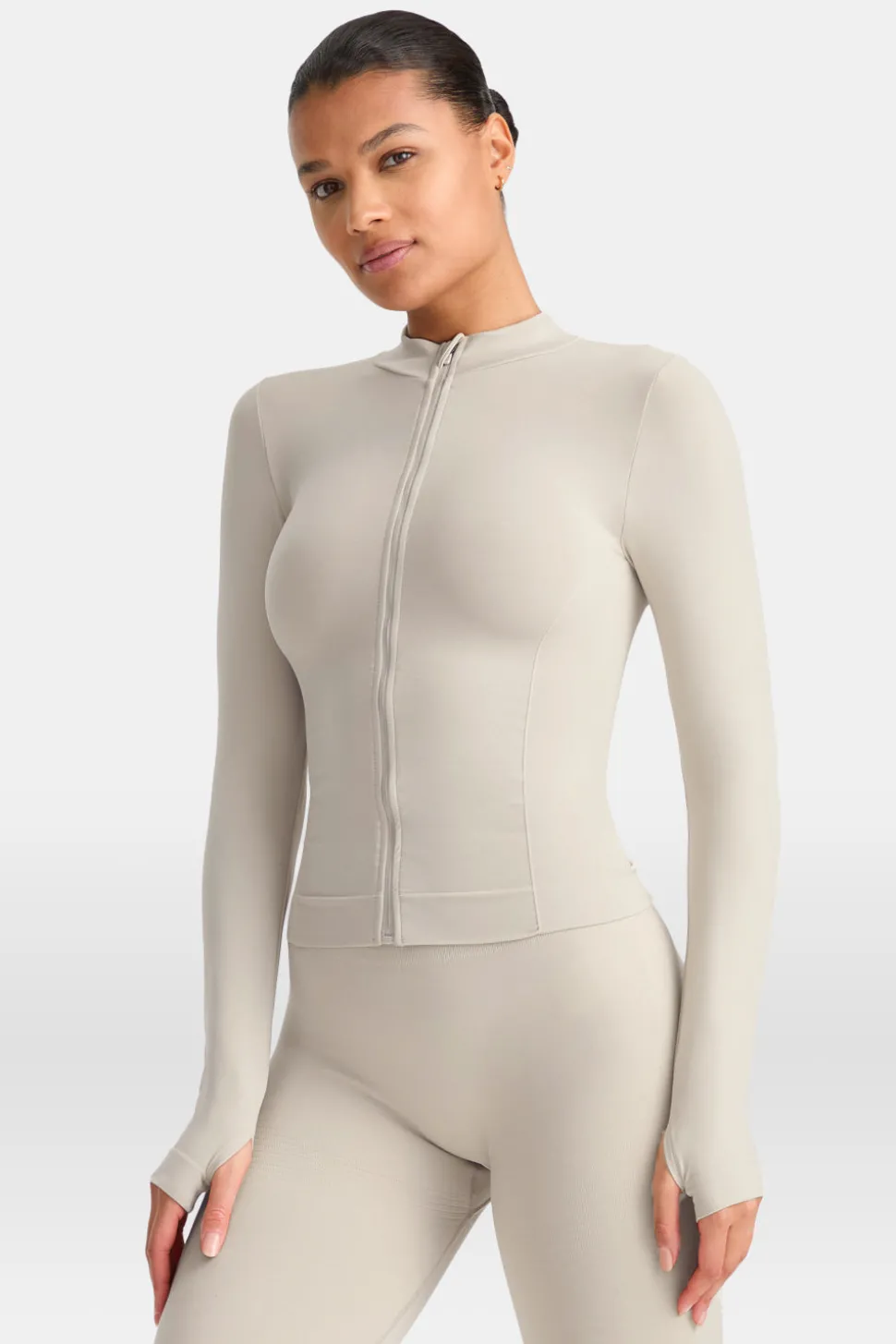 You asked so we delivered. Introducing the brand new Sculpt Seamless Zip Through Jacket now available in a highly requested longer length *cue applause*. Featuring the same flattering mock neck and no hood for a seamless silhouette, we’re obsessed with this jacket’s figure-hugging cut. A little longer than the original, giving you more coverage where you may want it. Contouring details flatter and cinch the waistline enhancing every silhouette thanks to the pocketless design. Made from our signature Sculpt Seamless fabric, it’s breathable, lightweight and made from post-consumer recycled materials (trust us, that’s also sexy). She has a lockable zip and the thumbholes meaning the sleeves stay in place too.