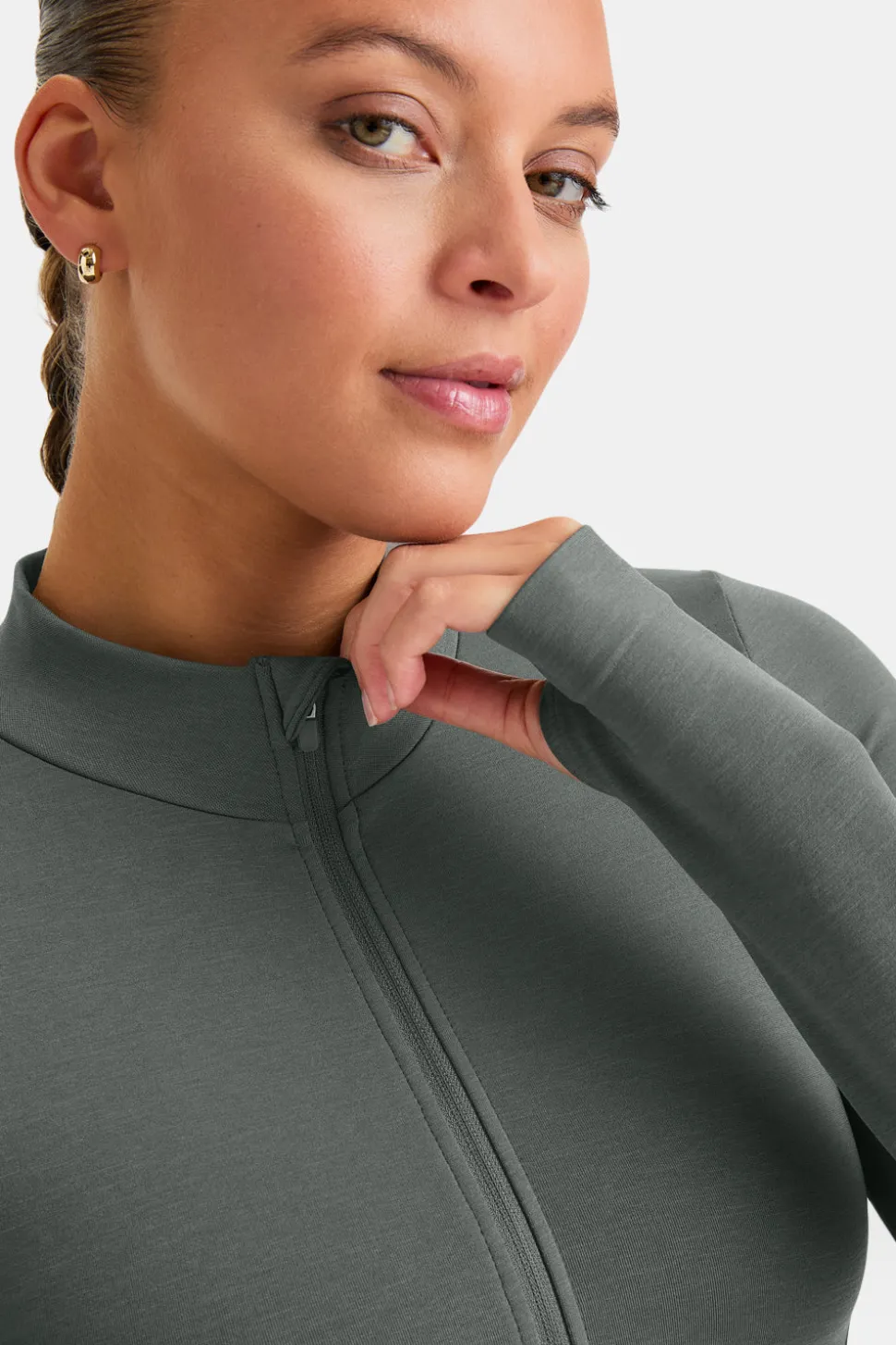 You asked so we delivered. Introducing the brand new Sculpt Seamless Zip Through Jacket now available in a highly requested longer length *cue applause*. Featuring the same flattering mock neck and no hood for a seamless silhouette, we’re obsessed with this jacket’s figure-hugging cut. A little longer than the original, giving you more coverage where you may want it. Contouring details flatter and cinch the waistline enhancing every silhouette thanks to the pocketless design. Made from our signature Sculpt Seamless fabric, it’s breathable, lightweight and made from post-consumer recycled materials (trust us, that’s also sexy). She has a lockable zip and the thumbholes meaning the sleeves stay in place too.