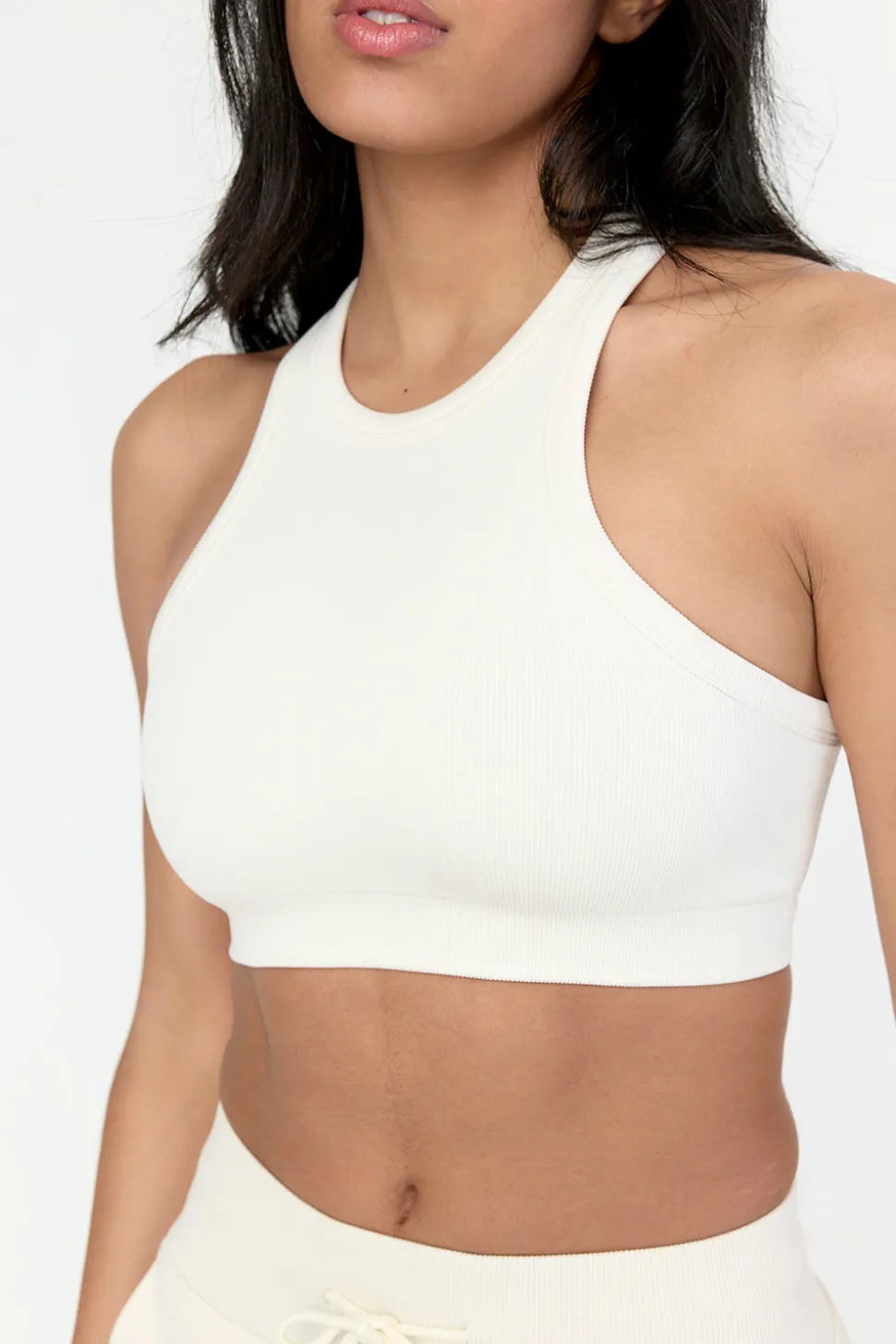 Sculpt Seamless Ribbed Racer Sports Bra – Milk Marl