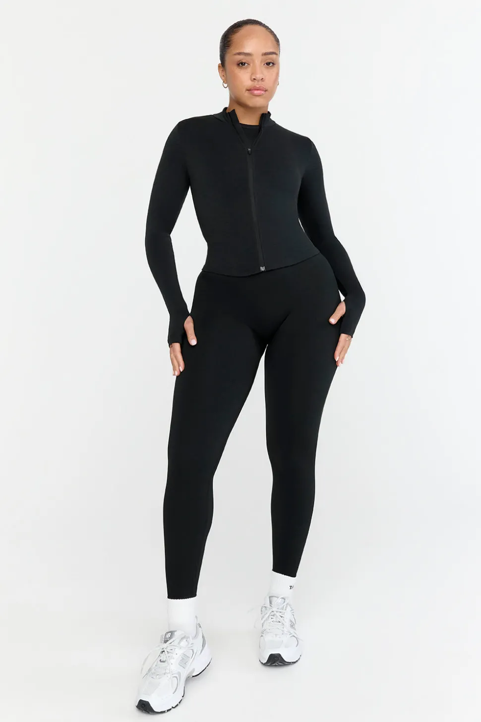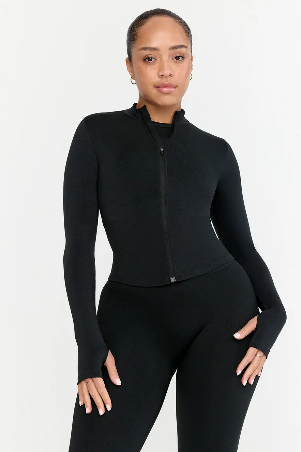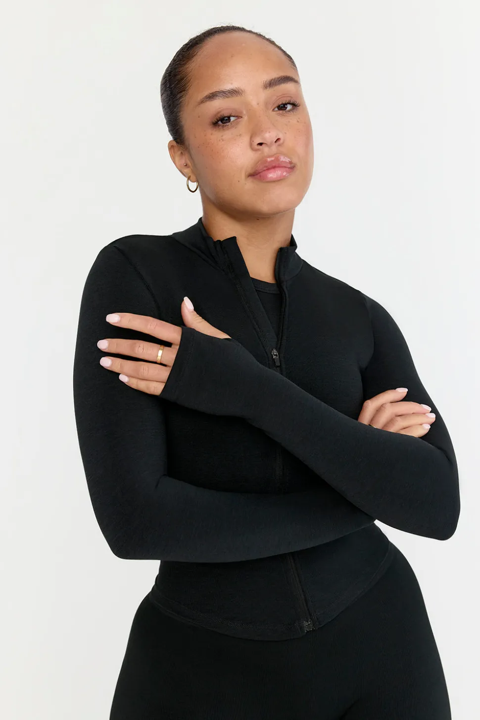 Sculpt Seamless Ribbed Zip Through Jacket- Black Marl