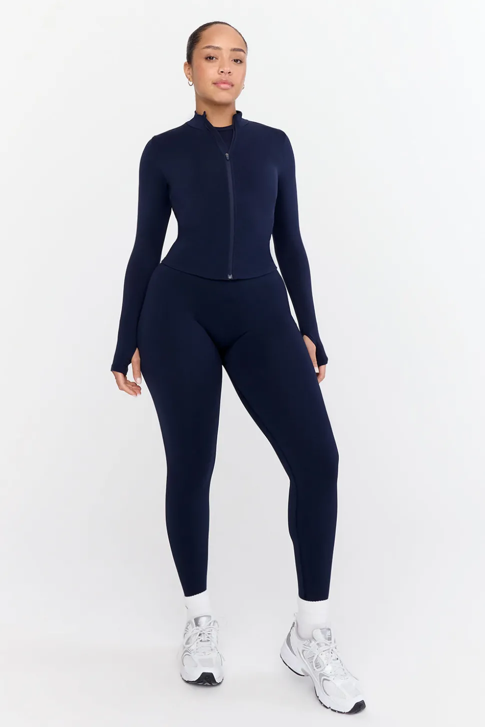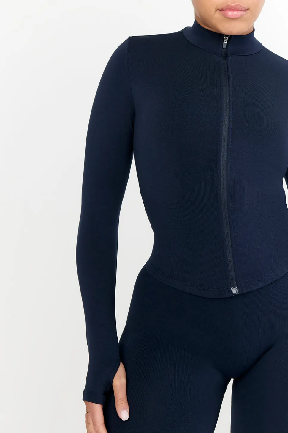 We’ve given our viral BBL jacket an MOT and added some new & improved features. The ribbed material combined with engineered corseting, and a universally complimentary cut that sits at the perfect height and will take your shape to the next level. With all the bells and whistles you’re used to, a mock neck and no hood add to the sleek silhouette. The pocketless design adds to the figure-hugging and contouring details that flatters and cinches every. Single. Waistline. We’re yet to see a waistline that wasn’t snatched by this jacket.