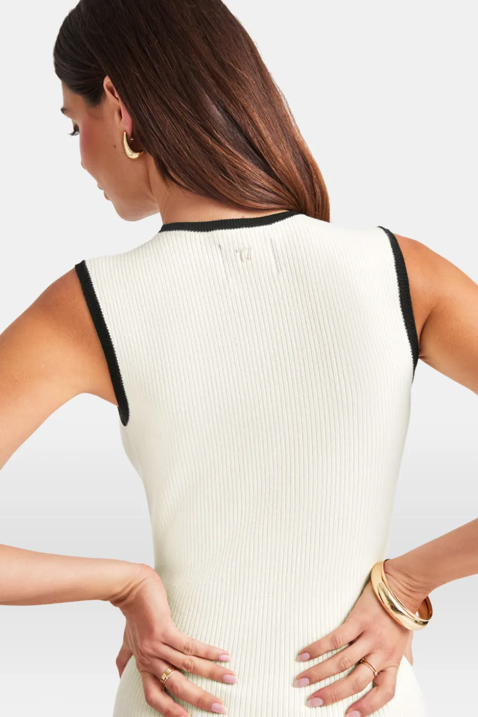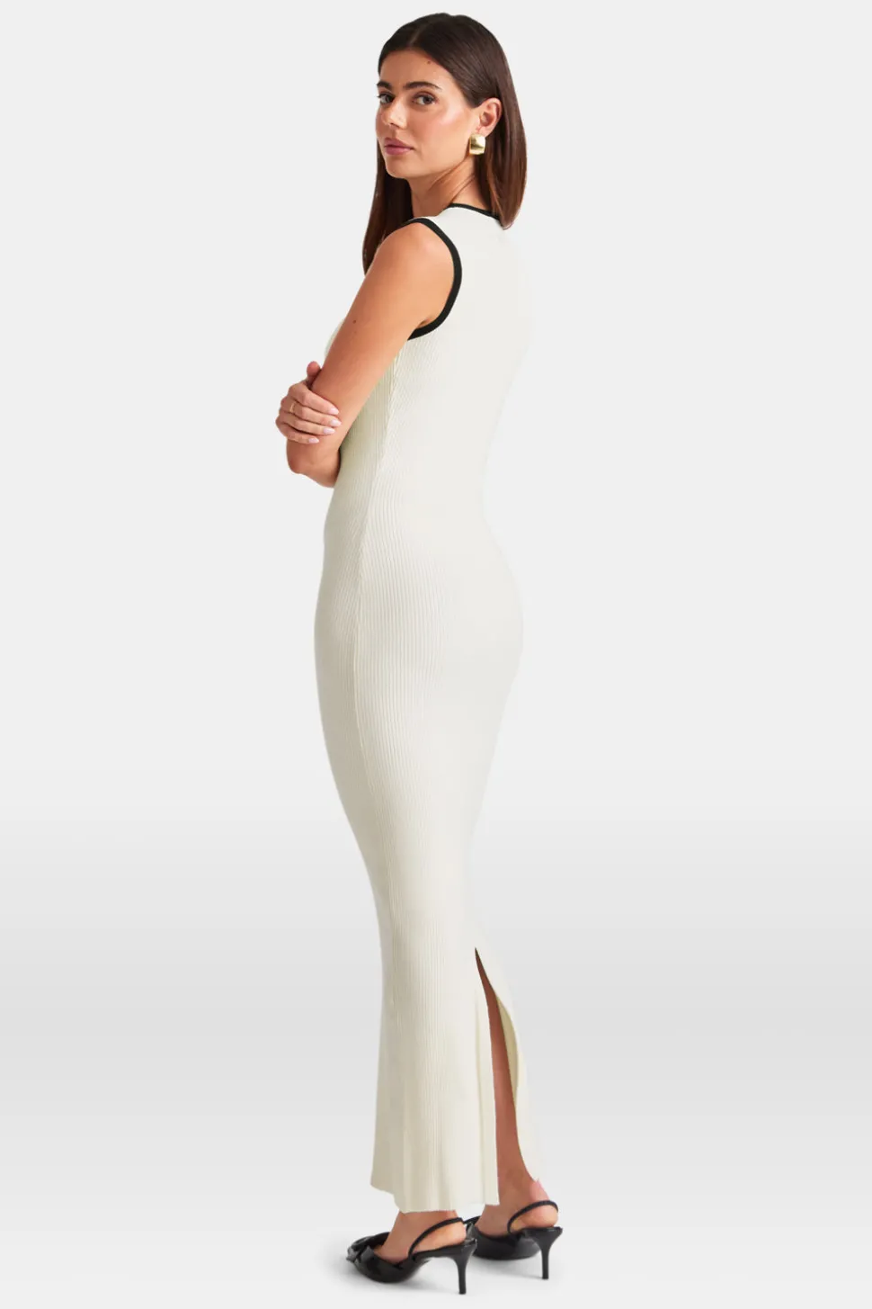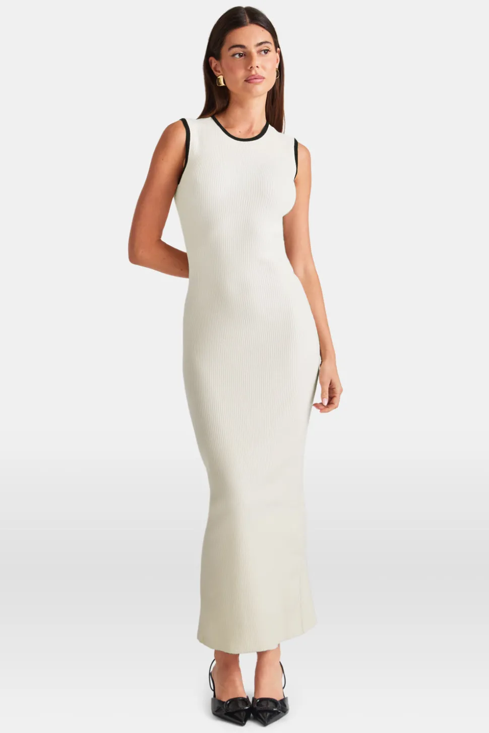 Sleeveless Contrast Ribbed Knit Maxi Dress – Buttermilk And Black