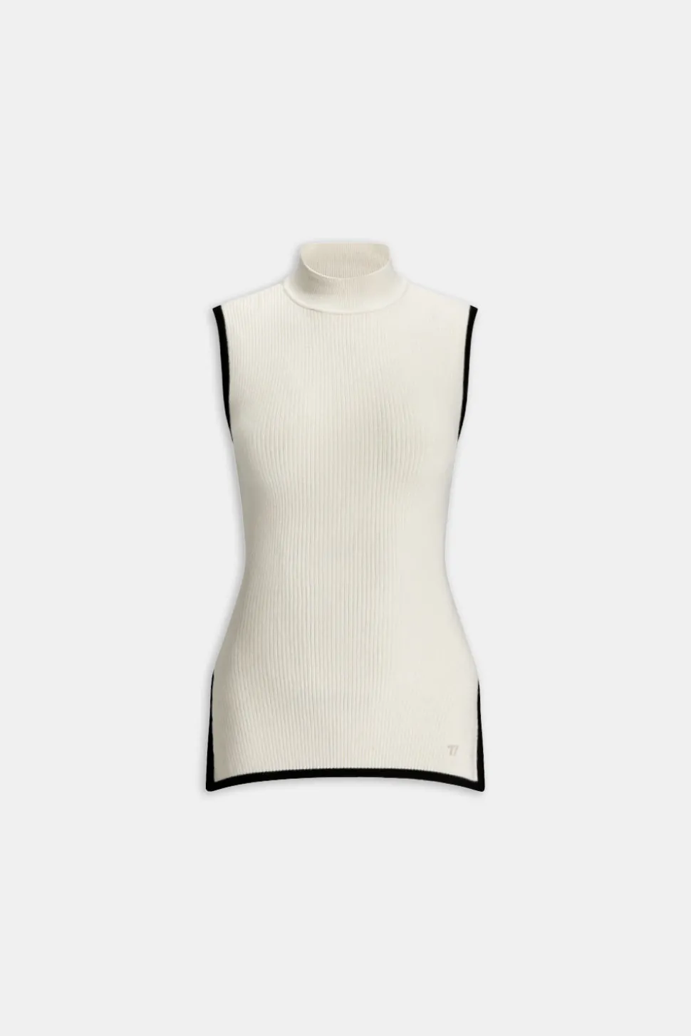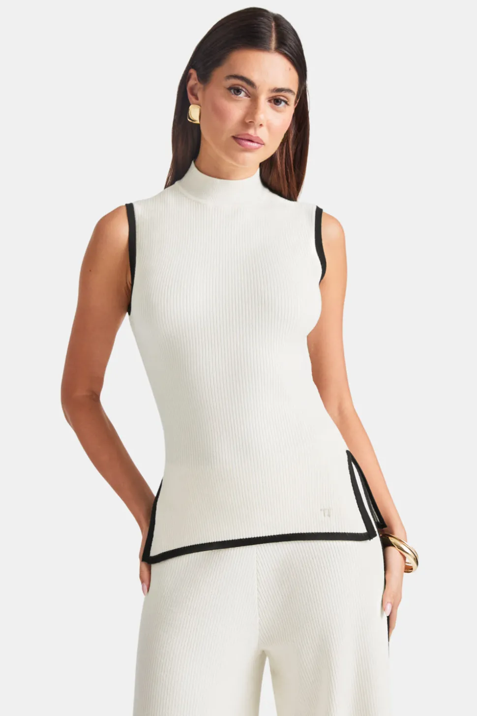 She’s the nice top to end all other nice tops for your jeans. A sleeveless turtleneck tank that’s form-fitting through the body, featuring a flattering side split detail at the hem to enhance your natural curves. Complete with (kn)it girl approved contrast edge detailing and a tonal embroidered TALA logo at the back, you’ll reach for her every day/week/year.