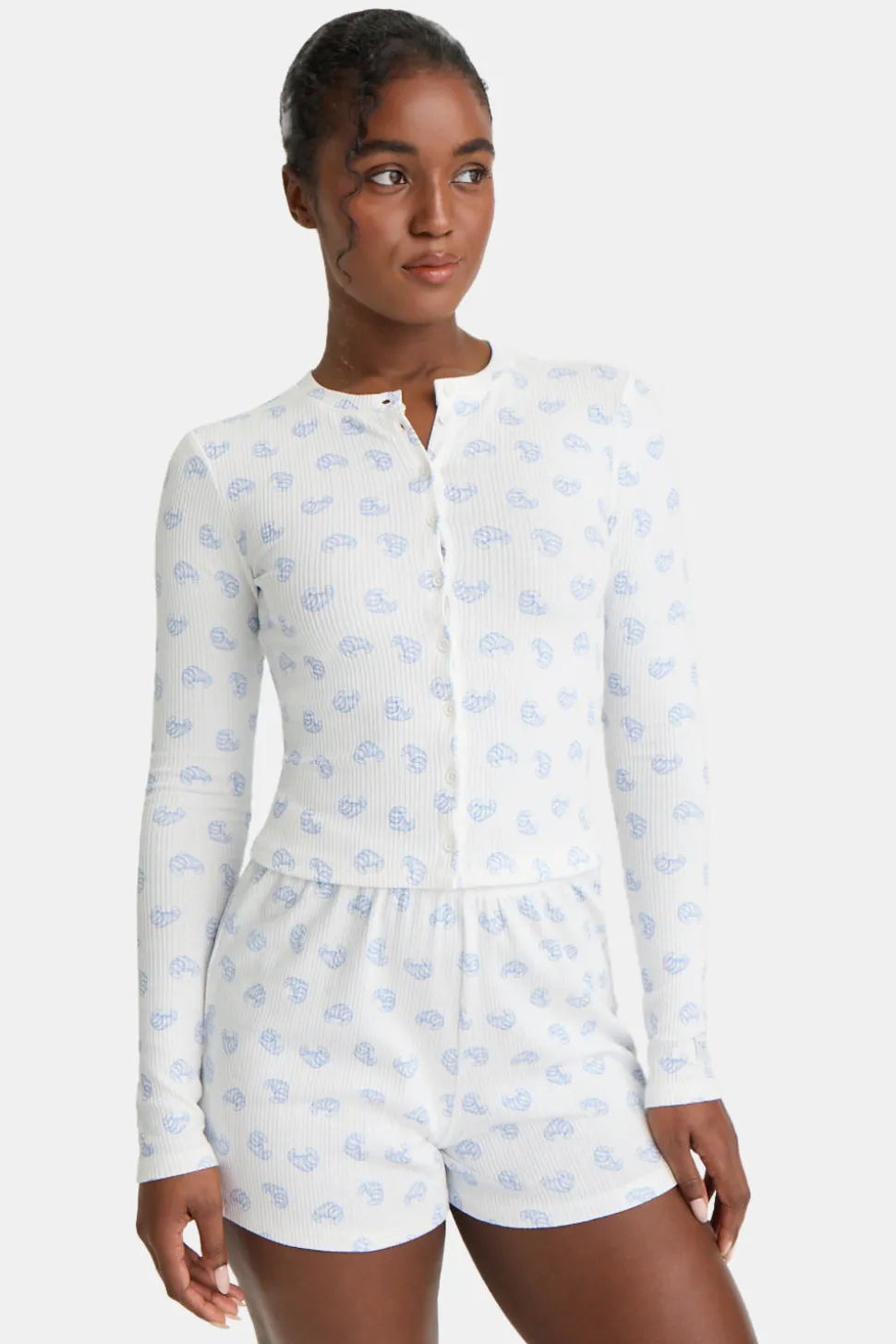 Wrap yourself in cosy charm with our Soft Lounge Pyjama Cardigan, the perfect blend of cute and practical. Made from super soft cotton pointelle fabric, this mid-length cardigan features an oh-so-cute button-through design that’s great for layering over your favourite sleepwear or casual lounging outfits. Mix and match it with your favourite sleepwear items to create the perfect lounging look.