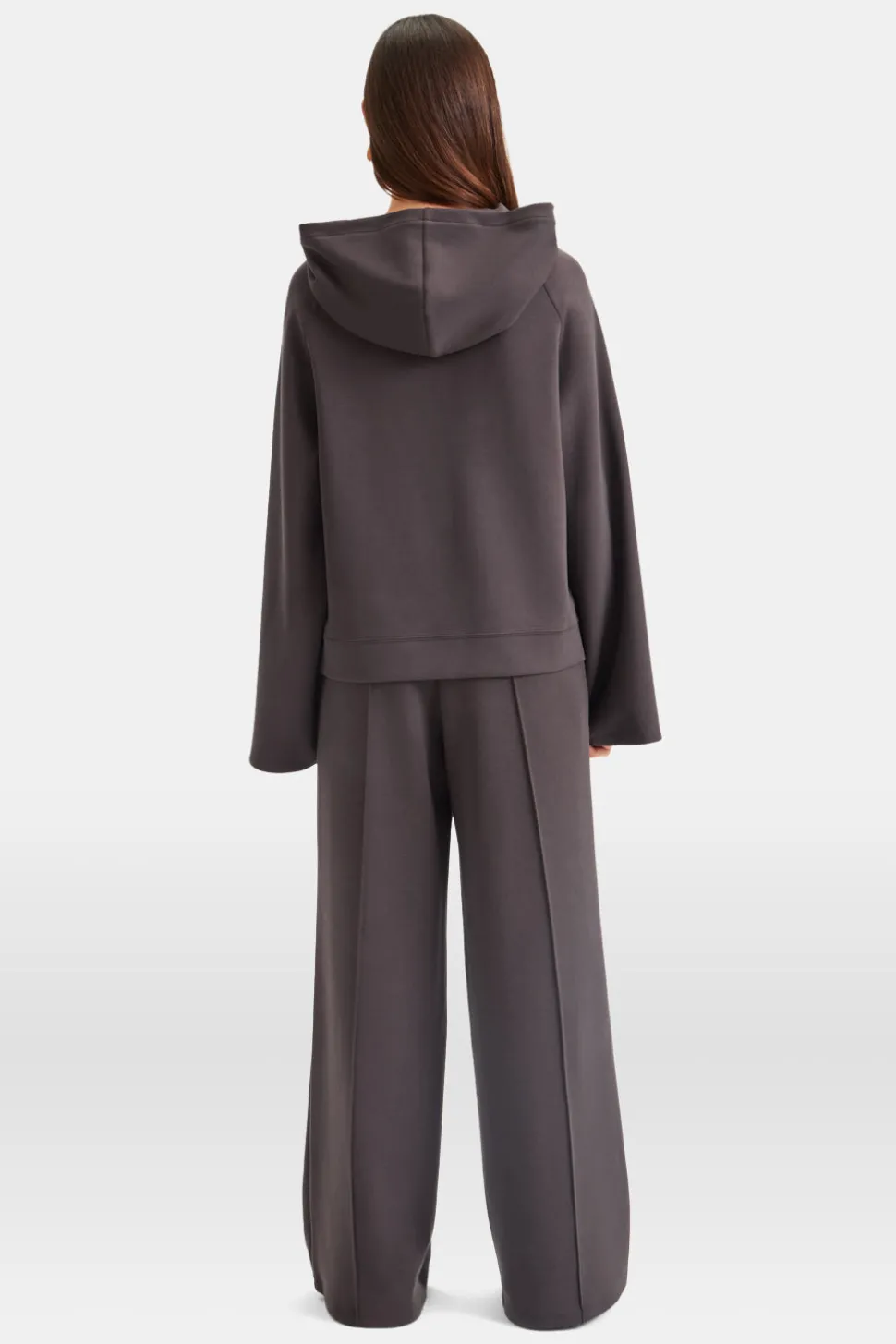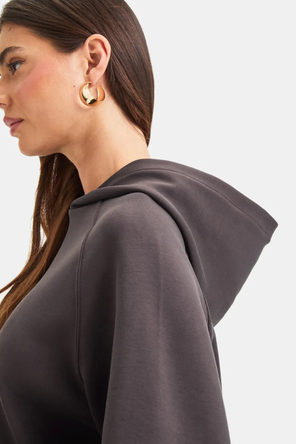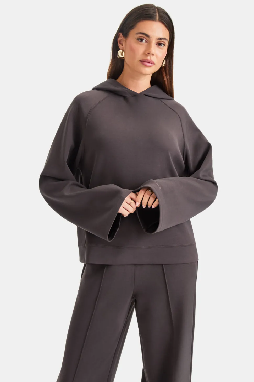 What if we told you that you could wear a hoodie and still look the best you ever have? Our new Flared Sleeve Hoodie has comfort and cool all wrapped up. Crafted from our luxurious SoftSmart Sweat modal blend, the sleek cross-over neckline keeps things stylish without the fuss of drawcords, while the flared sleeves add a flattering touch to this relaxed, slightly oversized piece. Complete with an oversized hood so roomy, you might get lost in it on those ‘I need my space’ days, she’s perfect for lounging at home or stepping out in effortless style.