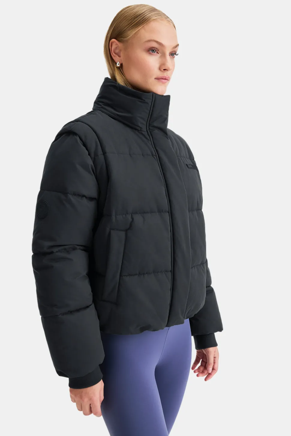 - Multiway design for multiple looks: Coat, Cropped Jacket, and Puffer Vest in one